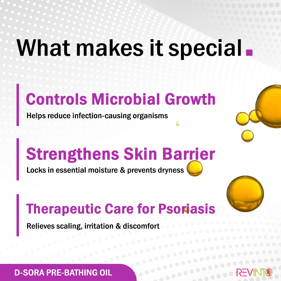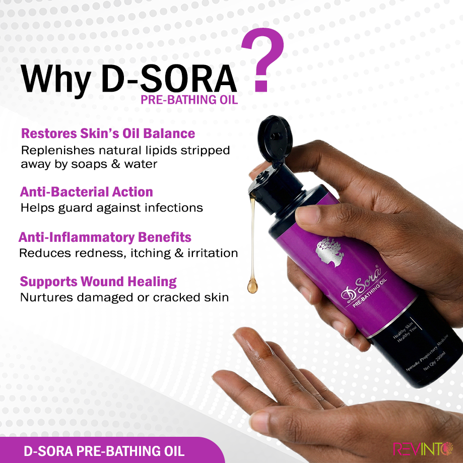 Revitalize your skin with D-SORA PRE-BATHING OIL, specially formulated to restore oil balance, reduce microbial load, and support healthy skin function. Ideal for conditions like psoriasis and dry skin, this oil combines anti-bacterial and anti-inflammatory properties to promote healing and skin health.