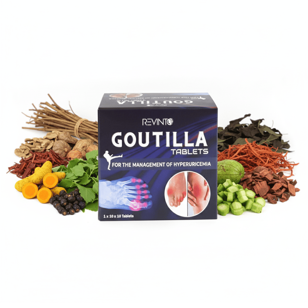 Goutilla Tablets offer a comprehensive solution for managing hyperuricemia and related gout symptoms. This powerful herbal formula helps regulate uric acid levels, prevent the formation of urate crystals in the joints, and control inflammation associated with gout. By supporting natural detoxification processes, Goutilla Tablets assist in eliminating excess uric acid and maintaining optimal blood composition, promoting sustained joint health and comfort.